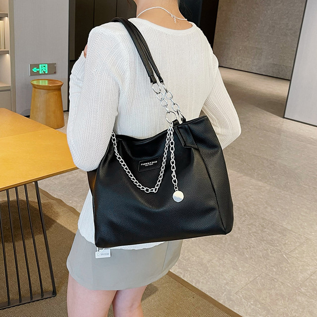 Сумка шопер з декоративним ланцюжком жіноча чорна